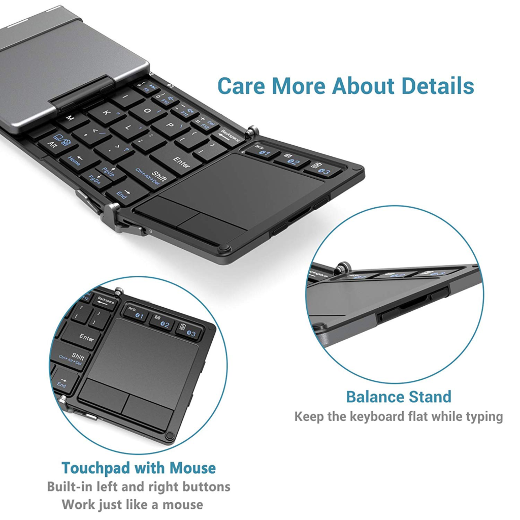 iClever BK08 是目前最好的折叠键盘,适合需要超便携选项的人。它配有内置触控板,成为您打字和导航需求的一体化解决方案。其可折叠设计使其易于携带,充电电池可持续使用长达60小时。它兼容iOS、Android和Windows设备。